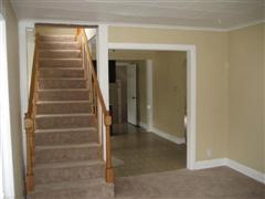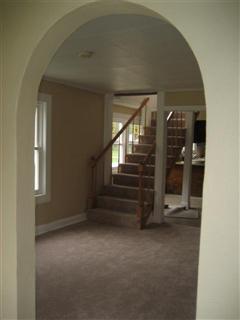 This is the best rehabbed of the homes we saw, unfortunately the stairs were moved to a central location that took away from the living and dining spaces, and the detail work was only moderate in quality. The home has a number of newer features, from the front door to the carpet and paint to the windows. There are three rooms upstairs, and a clean, recently painted basement. The main floor has a kitchen of moderate size without appliances. The dining space would be an asset if the staircase didn’t intrude into it and the living room.