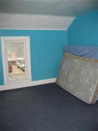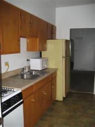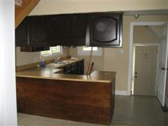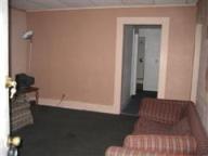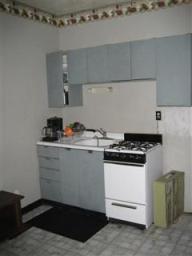 This house is set up as a duplex with a living space, kitchen and bath on each floor. There were efforts to improve this home, including newer linoleum in the kitchens and drop ceilings to cover flaws, but it still needs cleaning, paint and carpet. There are dead bugs and abandoned mattresses, but the home is much larger than the others we saw and could be pleasant with reasonable efforts to clean and rehab it. The lower level has three bedrooms, the upper level two bedrooms, and there are two sets of stairs, one between the floors and one acting as a separate entrance to the second floor.